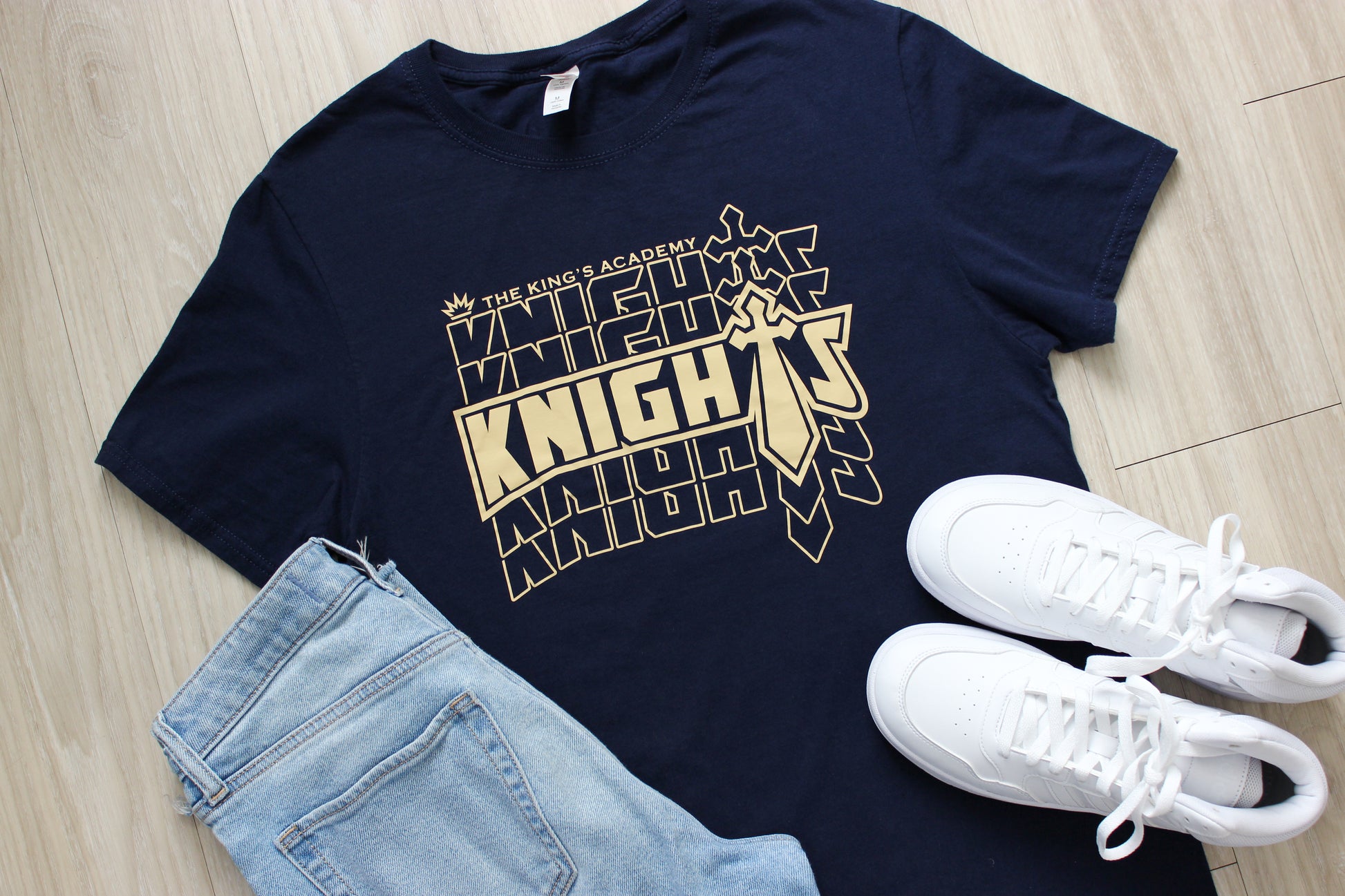 Classic "Knights" T-Shirt in Blue and Gold. The perfect way to show off your school spirit!